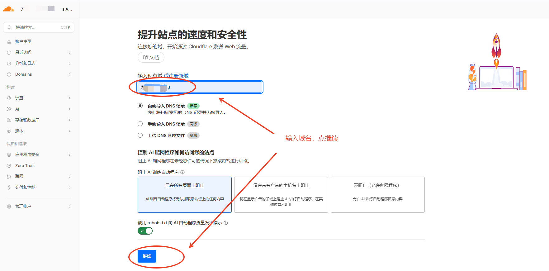 在Cloudflare这里输入域名