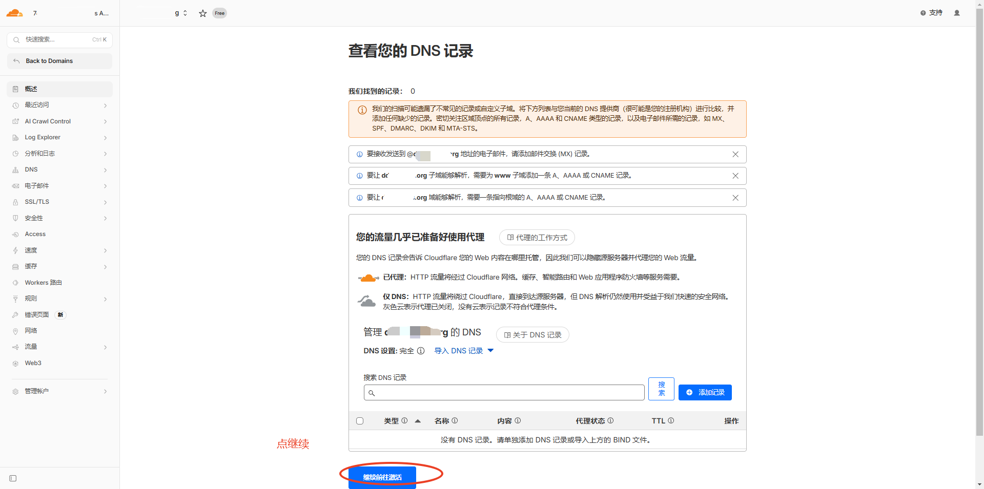 Cloudflare点继续前往激活